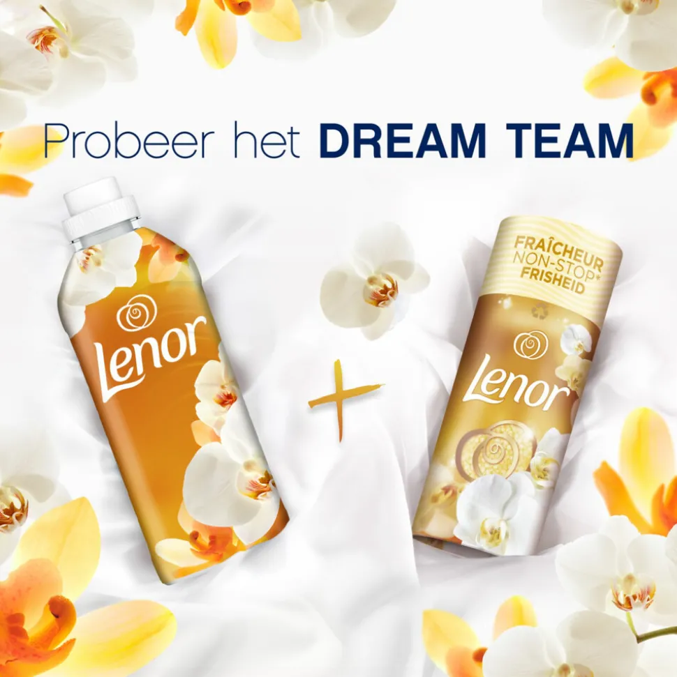 Lenor wasverzachter Amber & Orchidee geeft zen-momenten gedurende de dag dankzij 24 uur frisheid en een parfum met een vleugje essentiële olie. Geniet van het goede in het leven. De delicate orchidee-aroma’s vermengen zich op meesterlijke wijze met heerlijke vanilletonen en geven een warme geur die je ertoe inspireert om van elk moment te genieten.