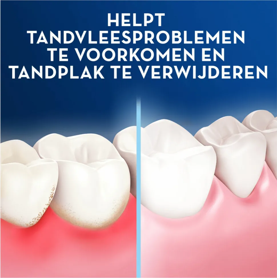 - Verwijdert tandplak-bacteriën in de ruimte tussen de tanden en langs de tandvleesrand