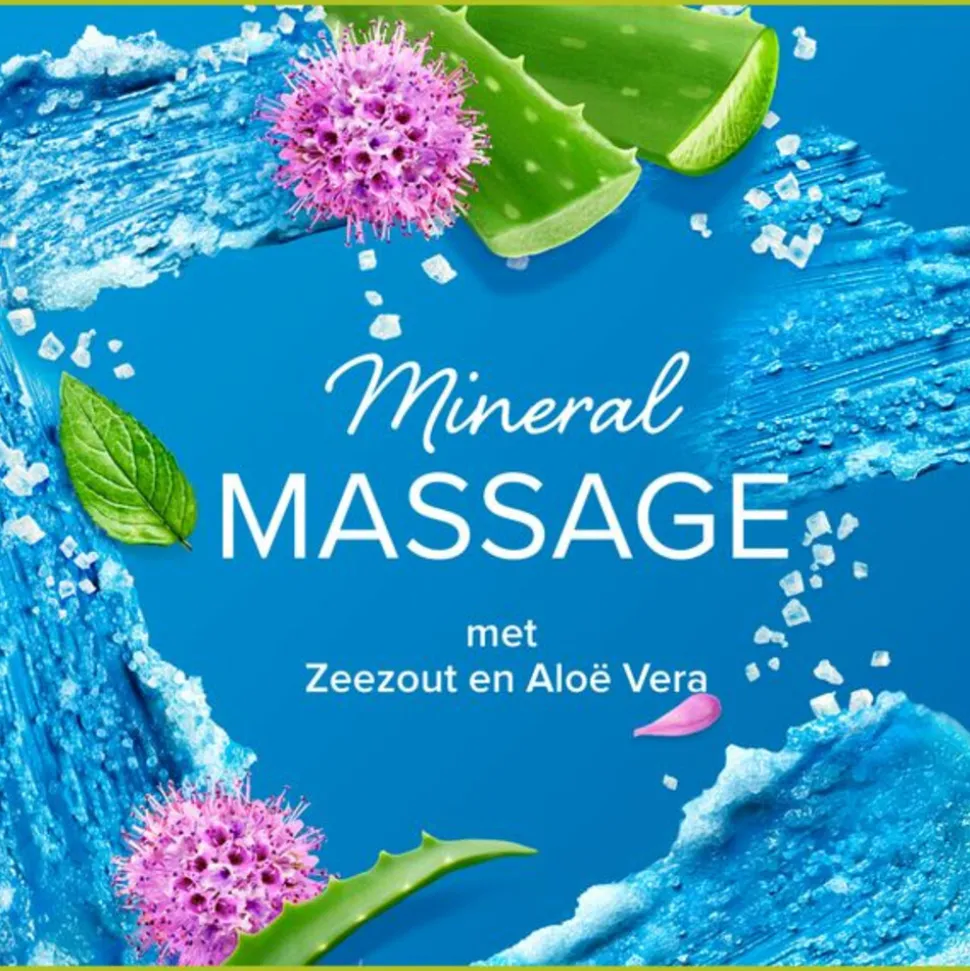 Geniet van een moment voor jezelf en spa-achtige verwennerij bij elke douchebeurt met Palmolive Thermal Mineral Massage douchegel. Deze bodywash met zeezout en aloë vera heeft een heerlijke geur en lekkere scrub-textuur om je te helpen je meer verbonden te voelen met de natuur. Deze douchegel is gemaakt met ingrediënten van 95% natuurlijke oorsprong* en heeft een formule die voor 93% biologisch afbreekbaar is. De douchegel bevat ook 100% natuurlijke essentiële olie voor een luxueuze douche-ervaring waardoor je je helemaal verwend voelt. De douchegel zit in een fles die voor 30% uit gerecycled plastic bestaat en volledig recyclebaar is. Voel je meer mens.