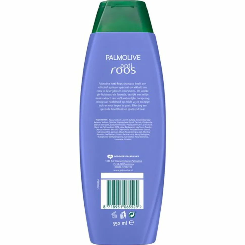 Ga roos tegen met Palmolive Anti Roos Shampoo.Met een speciaal effectief systeem ontwikkeld om roos te bestrijden én voorkomen. De unieke pH-Huidneutrale formule, verrijkt met wilde munt extract van 100% natuurlijke oorsprong. De shampoo met wilde munt-extract is een frisse, milde shampoo en helpt roos te voorkomen. De shampoo laat je haar glanzen en maakt je haar makkelijk doorkambaar. Elke dag een gezonde hoofdhuid en glanzend haar.