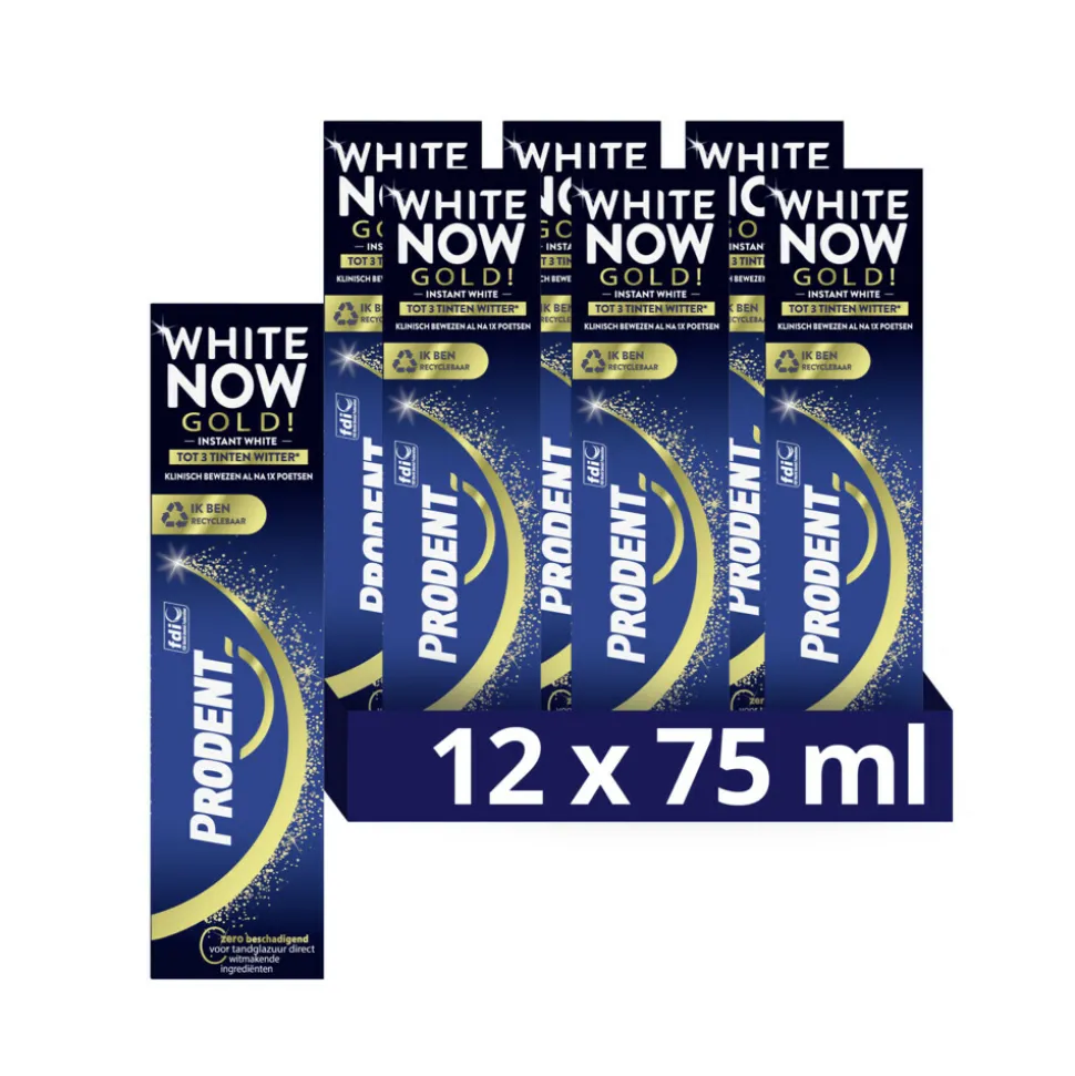 - Prodent White Now Gold Tandpasta maakt direct tot 3 tinten witter*