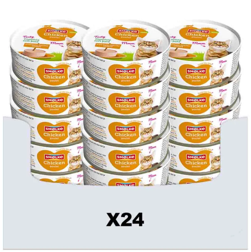 De heerlijke soft paté van Smolke is een complete maaltijd voor je volwassen kat, senior kat of kitten. De soft paté is bereid met superfood ingredienten zoals lijnzaad en zalmolie en heeft een superzachte bite. De soft paté is gemaakt van natuurlijke ingredienten en de blikjes zijn recyclebaar.