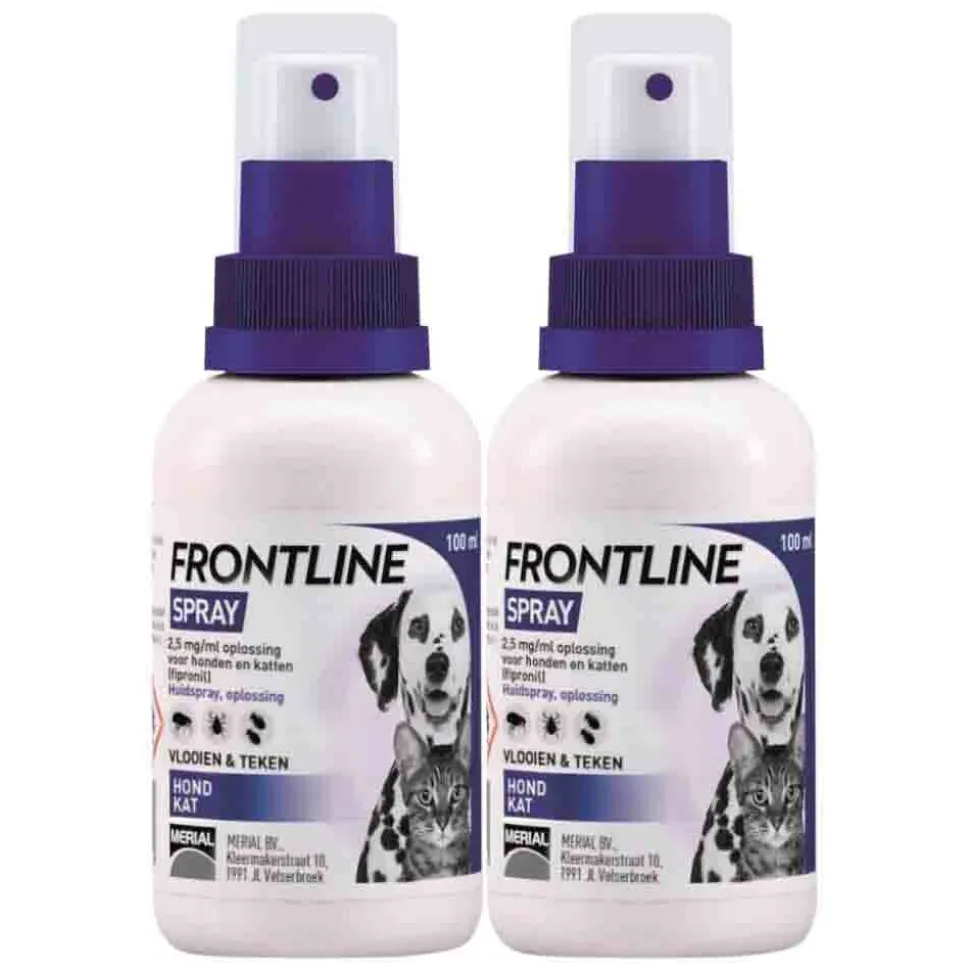 Frontline Spray bestrijdt vlooien en teken en spuit je direct op je hond of kat. De spray kun je eenvoudig aanbrengen met de spuitflacon.