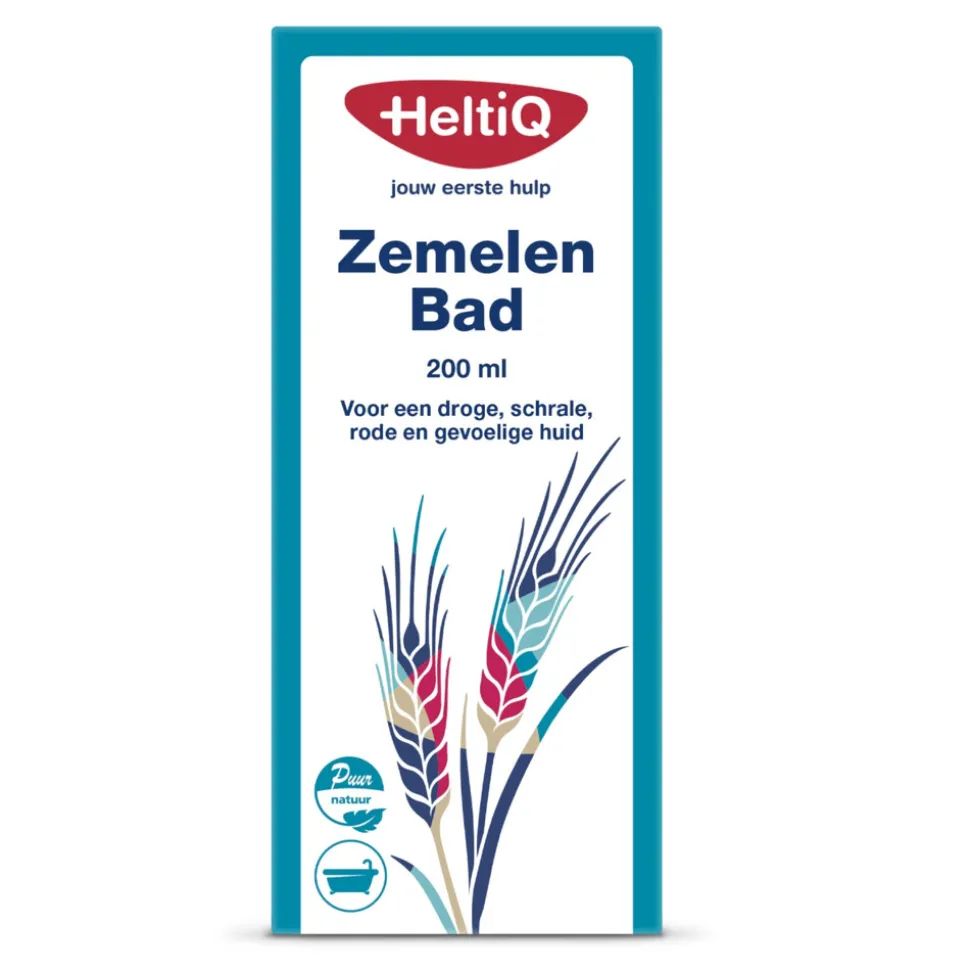 HeltiQ Zemelen Bad werkt verzachtend en jeukstillend bij een droge en/of geïrriteerde huid. Door de jeukstillende werking neemt de kans op littekens als gevolg van krabben af. Het product bestaat uit 100% natuurlijke ingrediënten en is absoluut veilig in gebruik voor kinderen vanaf 6 maanden en bij een gevoelige huid. In het extract zitten stoffen die de huid kalmeren en verzorgen bij bijvoorbeeld huidirritatie, gordelroos, psoriasis en eczeem.