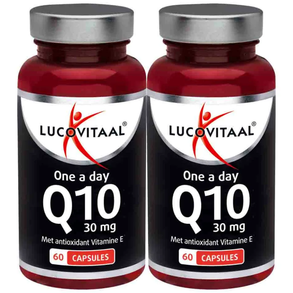 One a day Q10 van Lucovitaal bevat 30 mg Q10 per capsule en is natuurlijk gefermenteerd. Daarnaast bevat de capsule Vitamine E, ter bescherming van gezonde cellen en weefsels. Q10 is een vet oplosbare lichaamseigen stof die in de lever wordt aangemaakt. Q10 helpt enyzmen bij het maken van ATP (adenosinetrifosfaat), een molecuul waarin het lichaam de energievoorraad opslaat. De energie wordt gebruikt voor de spieren en om het afweersysteem van het lichaam te ondersteunen. De aanmaak van lichaamseigen Q10 wordt door verschillende factoren bepaald.De toevoeging van vitamine E levert een bijdrage als antioxidant, ter bescherming van gezonde cellen en weefsels. Mooi meegenomen is dat Q10 een antioxidant is die bescherming biedt tegen vrije radicalen. Lucovitaal One a day Q10 30 mg:- De toegevoegde vitamine E levert een bijdrage als antioxidant, ter bescherming van de cellen en weefsels