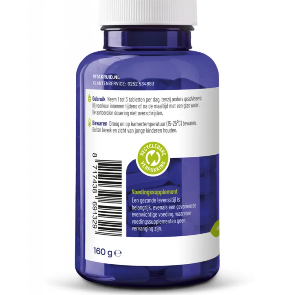 grond en atmosfeer. De zwavelsoort is onderdeel van de zogenoemde natuurlijke zwavelcyclus, waar al het leven op aarde op een bepaalde manier van afhankelijk is. Het percentage zwavel waaruit het MSM is opgebouwd is dan ook een goede graadmeter om de waarde van het nutriënt te bepalen. Daarom is de Vitakruid MSM gecomprimeerd uit 34% bio beschikbaar zwavel; de rijkste bron die we kennen. Het ontbreken van zware metalen en andere oneffenheden maakt dat het naast een pure, ook een veilige Methylsulfonylmethaan is. Vitakruid MSM heeft namelijk een puurheidsgarantie van 99,9 procent en is getest door onafhankelijke laboratoria. Vitamine C speelt een belangrijke rol voor het immuunsysteem*. Zo is aangetoond dat vitamine C de weerstand rondom fysieke inspanning verbetert*. Vitamine C is goed voor de collageenaanmaak*. Een onoverkoombaar probleem van dit nutriënt is echter dat we niet zelf in staat zijn de vitamine aan te maken. Vitamine C is daarom aan Vitakruid Msm toegevoegd, omdat de weerstandsondersteuner helpt het Methylsulfonylmethaan op te nemen.