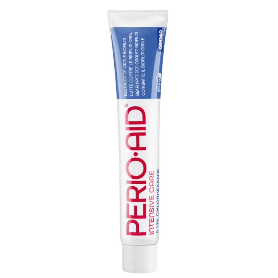 PerioAid Gel-Tandpasta Intensive Care is bedoeld bij tandvleesontstekingen. De Gel-Tandpasta heeft een uitstekende smaak. Deze PerioAid Gel-Tandpasta kan als langdurige ondersteuning gebruikt worden van in de parodontale nazorg en gevoelig tandvlees. Ook in geval van verminderde weerstand, stress, ziekte of wanneer goed poetsen niet mogelijk is, biedt de PerioAid Gel Tandpasta ondersteuning. Deze Gel-Tandpasta kan zowel in combinatie met een tandenborstel als met een interdentale rager gebruikt worden.