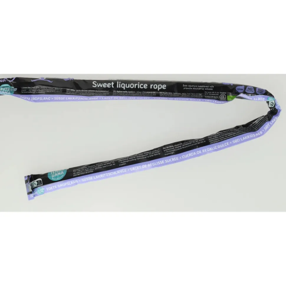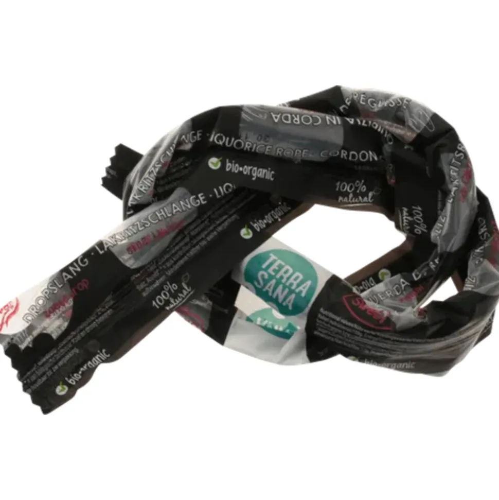 TerraSana Dropslangen Zoet zijn zoete dropslangen gemaakt van de beste, biologische ingrediënten. De lekkere smaak komt tot stand door een uitgebalanceerde combinatie van onder meer biologische milde zoethoutwortelextract en biologische anijsolie. Deze dropslangen zijn maar liefst 65 cm lang om lekker lang van te genieten.