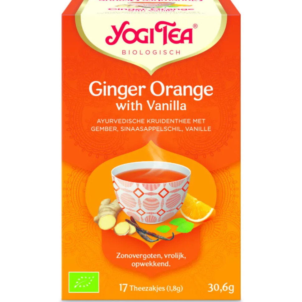 Yogi tea Biologisch Ginger Orange Vanillabiedt een heerlijke balans tussen zoet en pittig. De thee bevat gember, zoethout, sinaasappelolie en pepermunt. Deze combinatie zorgt voor een warme, verfrissende smaak met een exotische hint van vanille. Elke slok prikkelt je zintuigen en geeft je een natuurlijke energieboost. Perfect om even tot rust te komen of je geest te verkwikken.