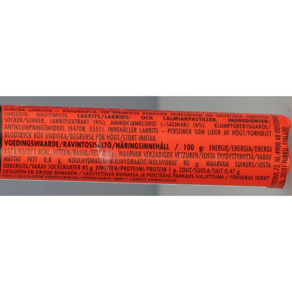 Suiker, zoethoutwortelextract, salmiakzout, anti-klontermiddelen: (E470b, E551).