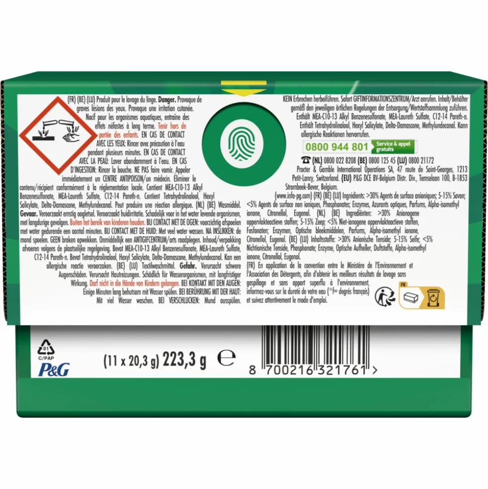 Ariel 3in1 Pods wasmiddelcapsules Alpine lossen snel op, zelfs in koud water, en leveren onberispelijke resultaten bij koude en korte programma’s. Was kouder met Ariel Pods: kouder wassen helpt om elektriciteit en dus CO2 te besparen. Het helpt ook stoffen langer te beschermen (in vergelijking met wasprogramma’s met warm water). Ariel Pods worden ook in Frankrijk gemaakt. In contact met water lost het 100% in water oplosbare Pods film volledig op om krachtige vlekverwijderende technologieën vrij te geven en Ariel’s diepe en sterke reiniging van 3in1 Pods Alpine te bieden. Daarnaast kunnen de Ariel wasmiddelcapsules helpen plastic te verminderen dankzij hun recyclebare ECOCLIC-kartonnen doos. Het is gemaakt met 70% gerecyclede vezels en bevat maximaal 5% plastic, ontworpen om je Pods te bewaren.