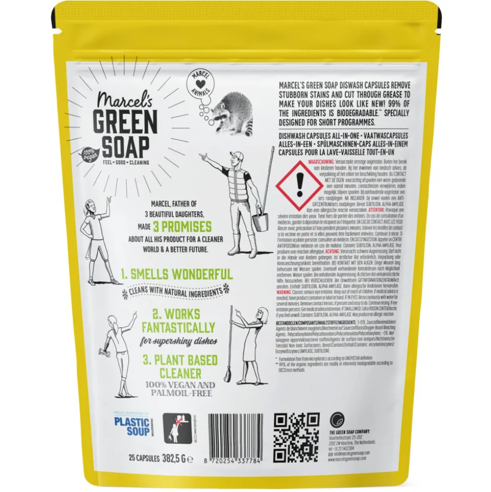 Ontdek de nieuwe vaatwascapsules van Marcel’s Green Soap! Deze krachtige, milieuvriendelijke capsules zorgen voor een schone vaat en een groen geweten. Gemaakt met natuurlijke ingrediënten, zonder schadelijke chemicaliën.