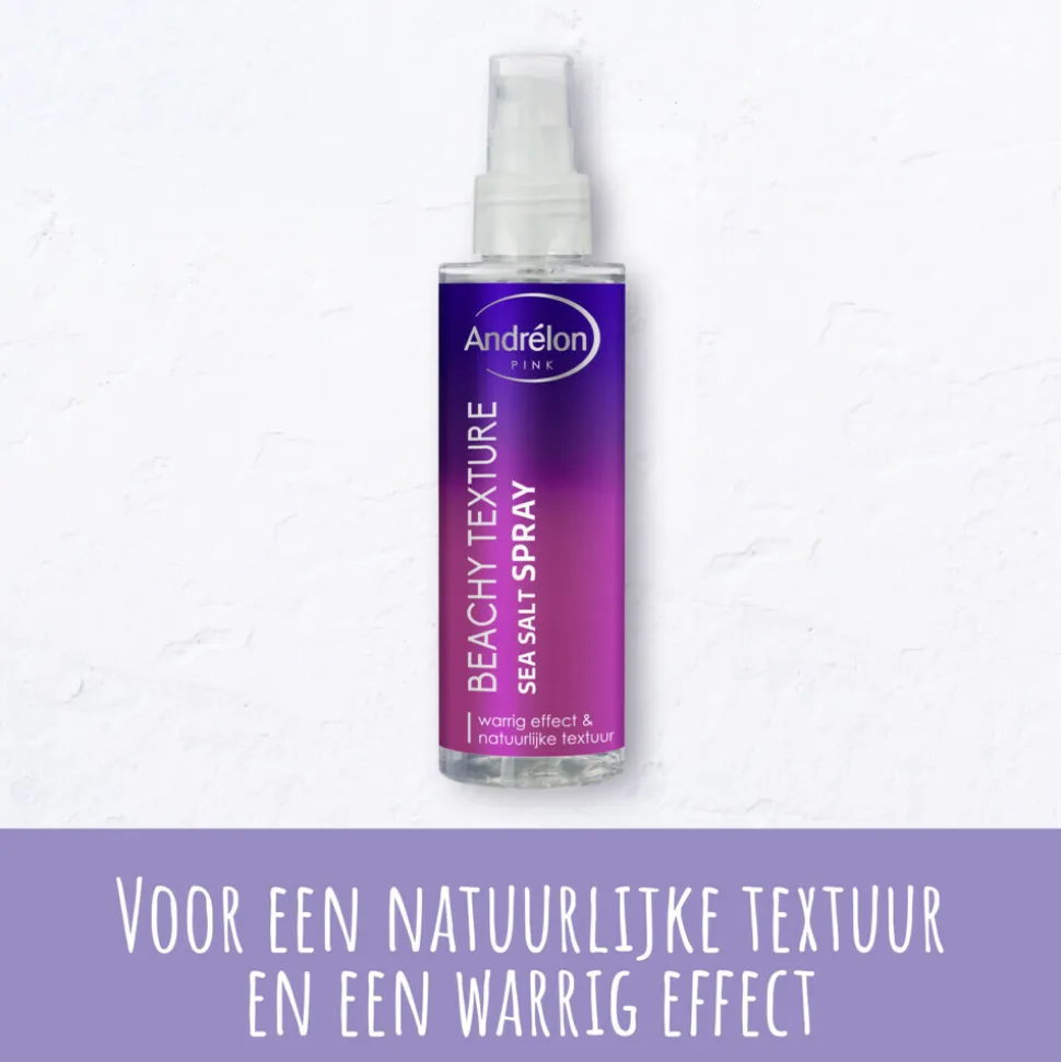 - Andrélon Pink Beachy Texture Sea Salt Spray geeft direct meer grip