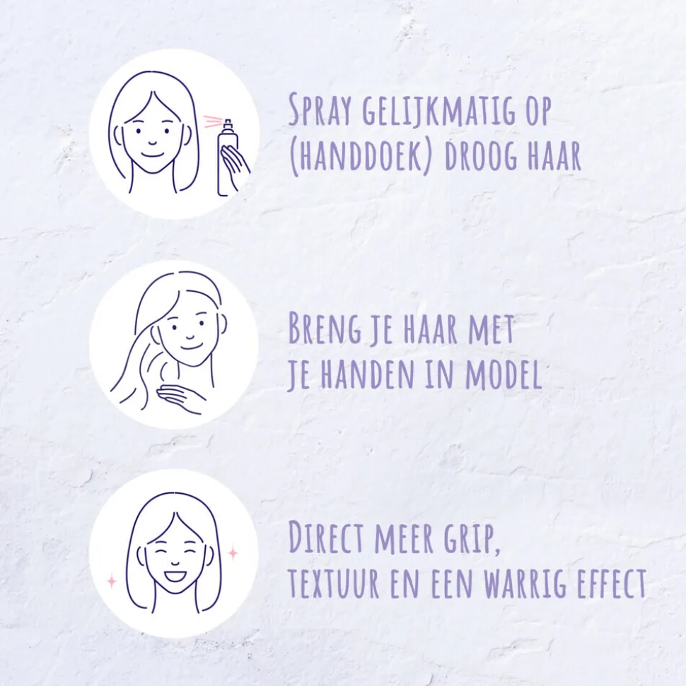 - Deze verzorgende haarspray zorgt voor een warrig effect in je haar