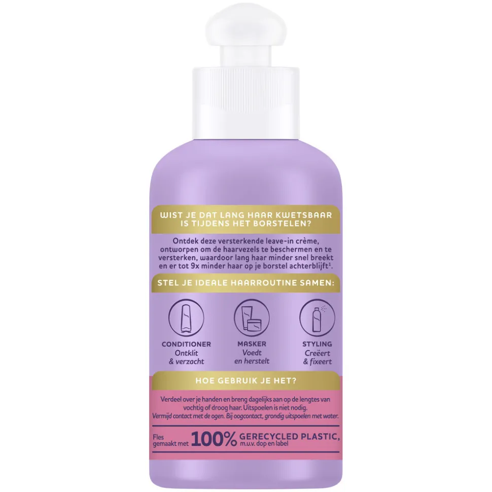 Wist je dat lang haar kwetsbaar is tijdens het borstelen? Ontdek de Andrélon Levendig Lang Versterkende Leave-in Haarcrème, een musthave voor iedereen die snel last heeft van lang haar dat snel breekt. Deze versterkende leave-in crème, verrijkt met biotine, is ontworpen om de haarvezels te beschermen en te versterken, waardoor lang haar minder snel breekt en er tot 9x minder haar op je borstel achterblijft*. Zorg goed voor je lange lokken, geef ze de bescherming die ze verdienen en laat ze weer dansen!