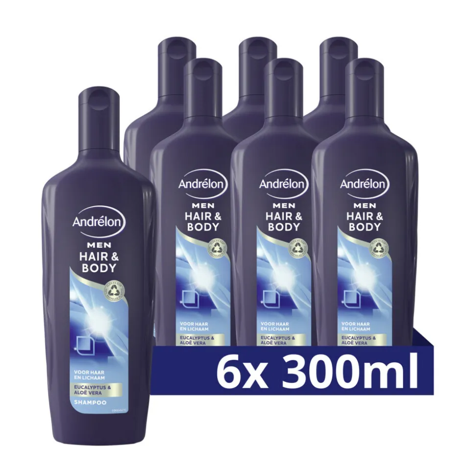 De Andrélon Men Hair & Body Shampoo, verrijkt met eucalyptus en aloë vera, is shampoo en douchegel voor milde reiniging van je haar en hydratatie voor je huid. Andrélon Men Hair & Body Shampoo is ontwikkeld voor mannen en geschikt voor het wassen van zowel je lichaam als je haar. Met deze complete verzorging in één fles heb je niets anders meer nodig. De shampoo is gemaakt met 92% ingrediënten van natuurlijke oorsprong. Deze fles en dop zijn 100% recyclebaar, gooi de fles dus weg bij het plasticafval.