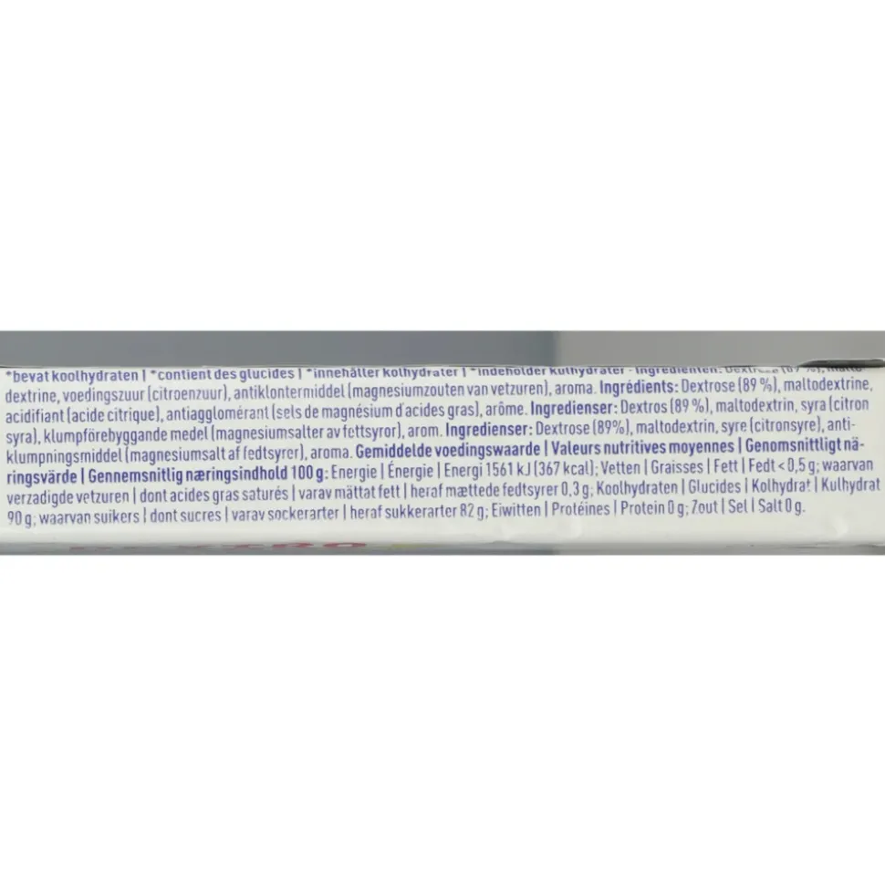 Dextrose (89%), Maltodextrine, Voedingszuur (Citroenzuur), Antiklontermiddel (Magnesiumzouten van vetzuren, Aroma.