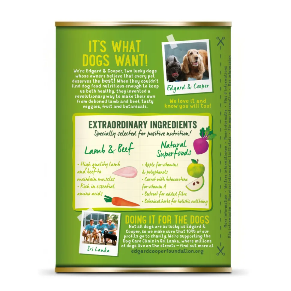 Edgard & Cooper Vers Vlees Hondenvoer Lam en Rund met appel, wortel en rode biet.
