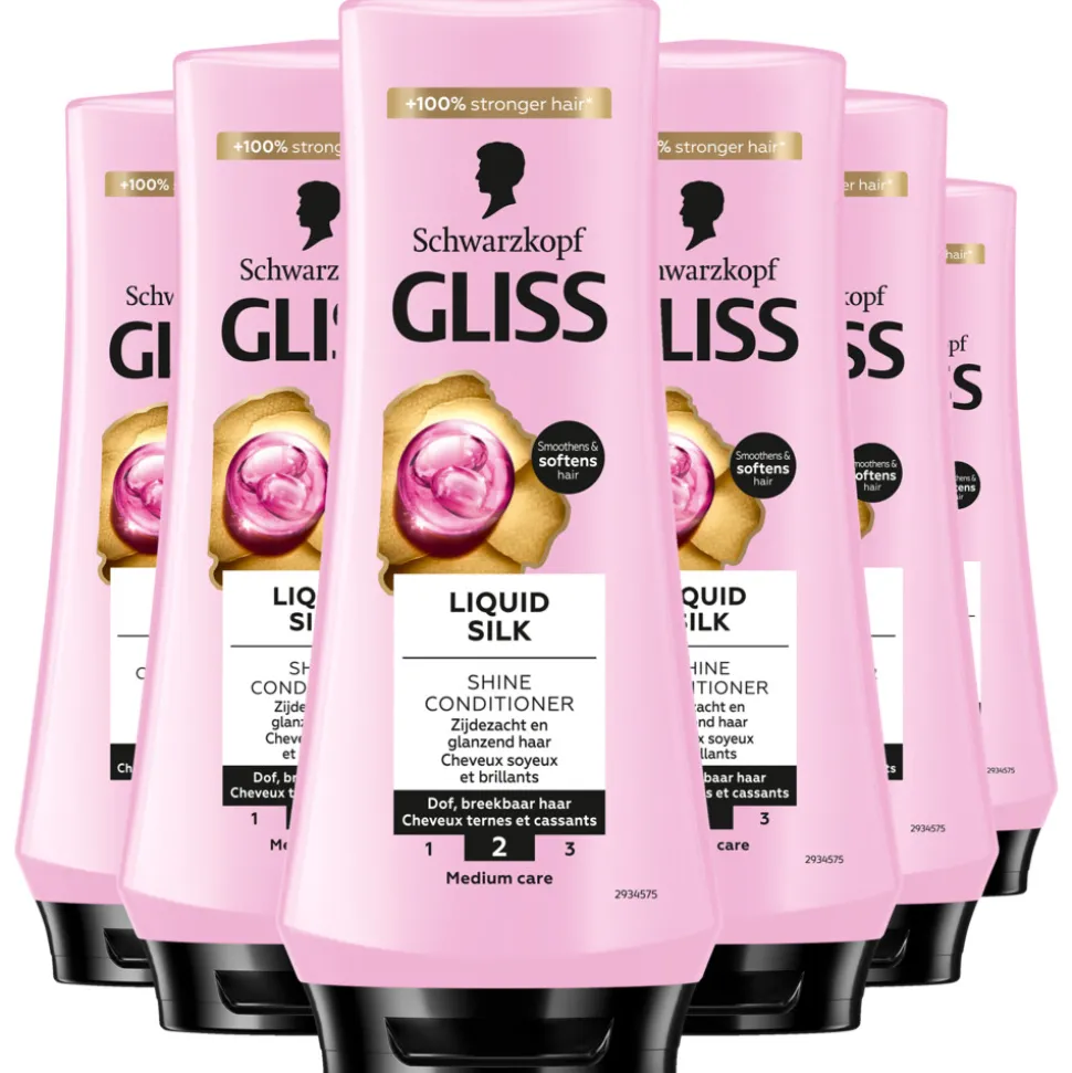 - Zijdezachte Glans: Gliss Liquid Silk Conditioner combineert ceramide en zijde om het haaroppervlak glad te maken en de natuurlijke glans te versterken.
