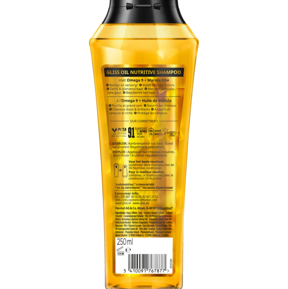 Is je haar overbelast en droog door het dagelijkse stylen? Om het haar soepel en gezond glanzend te maken, is een aangepaste verzorging nodig. Gliss Kur oil Nutritive biedt diep herstel, een gezonde glans en becat 91 % ingrediënten van natuurlijke oorsprong *. Speciaal ontwikkeld voor de behoeftes van lang, droog haar, is er de Oil Nutritive lijn met oleïnezuur & marula olie, dat het haar dat het haar voedt, soepel maakt en de haarpunten verzorgt. * incl. water