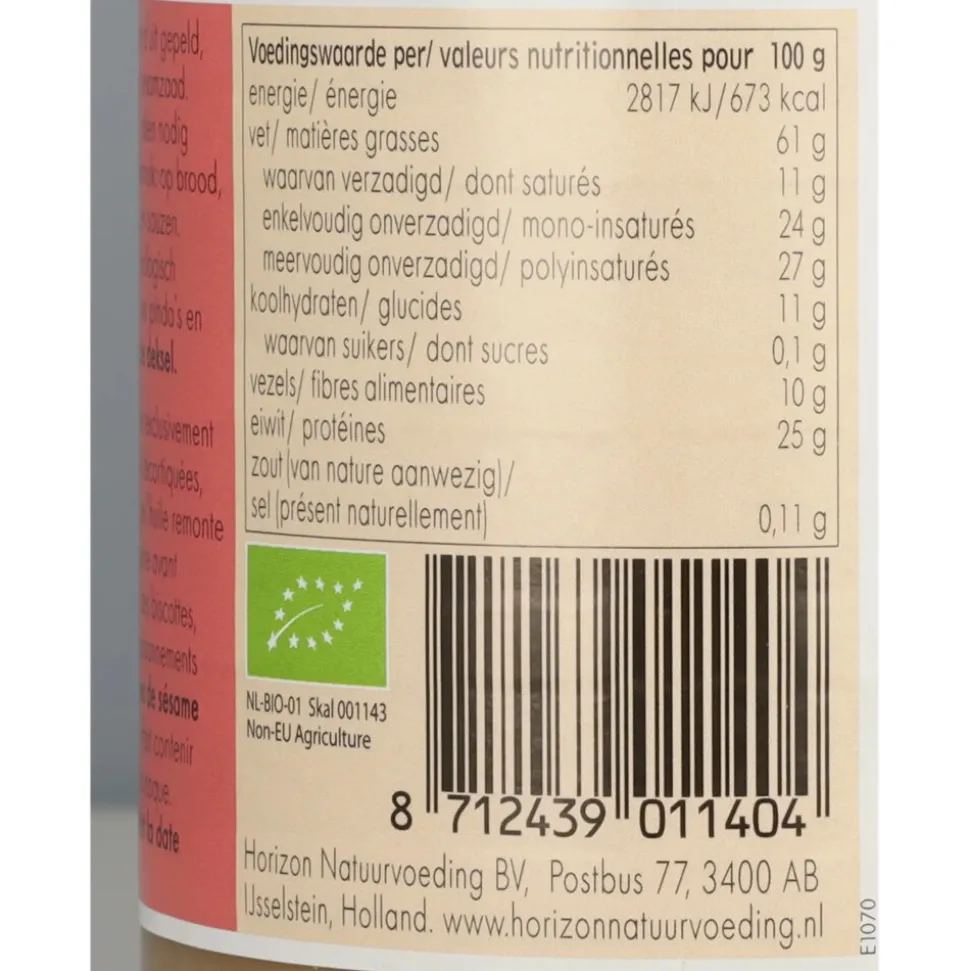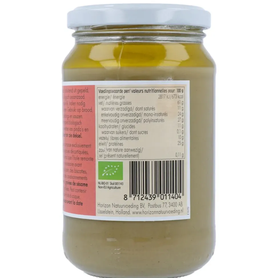 Horizon Witte Tahin Sesampasta is gemaakt van zorgvuldig geselecteerde, gepelde sesamzaadjes. Deze hoogwaardige pasta heeft een milde, nootachtige smaak en biedt een perfecte balans tussen voedingswaarde en puurheid. Zonder toevoegingen zoals suiker of conserveringsmiddelen is deze tahin een onmisbaar ingrediënt voor liefhebbers van natuurlijk eten. Voeg Horizon Witte Tahin Sesampasta toe aan je keuken en ontdek de veelzijdigheid van dit voedzame product.
