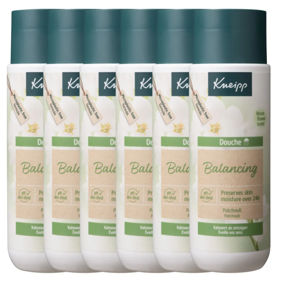 De zeepvrije Kneipp douche Balancing Patchouli bevat natuurlijke etherische patchouli-olie voor een rustgevend gevoel tijdens het douchen. Geniet van de zachte geur die je zintuigen kalmeert en ervaar hoe lichaam en geest weer in balans komen. De waardevolle milde formulering verbetert het huidgevoel tijdens en na het douchen en zorgt ervoor dat het vochtgehalte** van de huid behouden blijft.**Bevestigd door wetenschappelijk onderzoek.