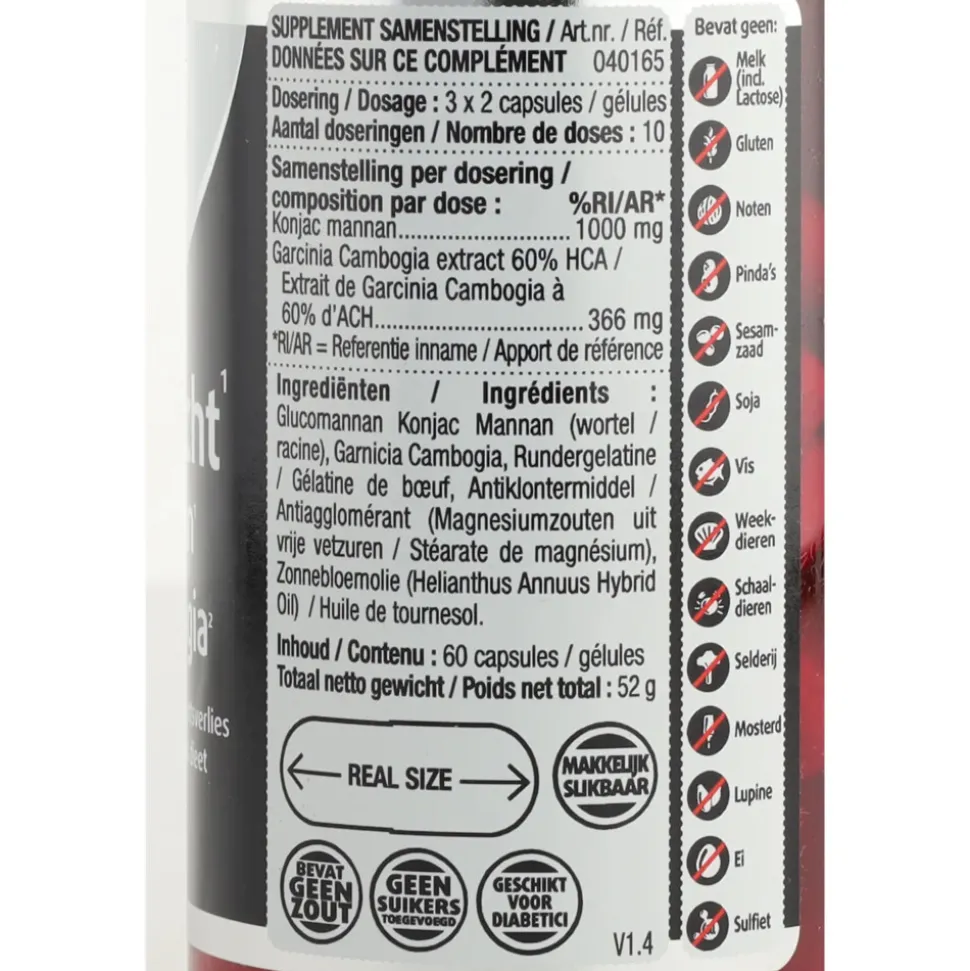 - Garcinia Gambogia met 60% HCA; helpt de eetlust verminderen