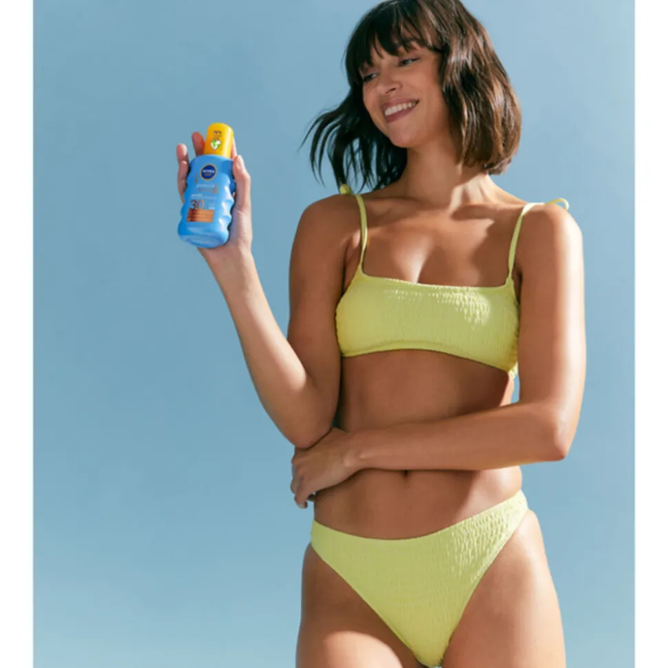 Nivea Sun Protect & Bronze Zonnespray biedt zeer effectieve en onmiddelijke UVA/UVB bescherming. Het natuurlijke pro-melanine extract stimuleert het huideigen bruiningsproces voor een mooie, egale bruine kleur zonder zelfbruiner. Gebruikt regelmatig om het bruiningsproces te bevorderen. De lichte, niet-vette formule is water resistent.