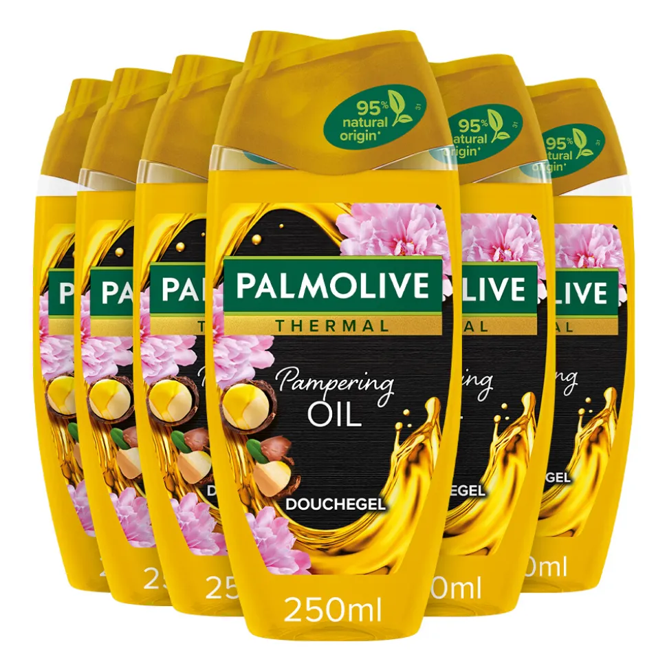 Palmolive Thermal Pampering Oil douchegel met macadamia-olie heeft een heerlijke geur en lekkere olie-textuur. De formule bevat 100% natuurlijke essentiële oliën om je te helpen je meer verbonden te voelen met de natuur.