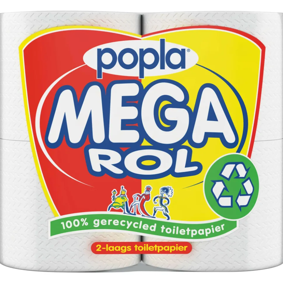 Popla Toiletpapier Megarol is heerlijk zacht en perfect absorberend toiletpapier. 100% gerecycled.