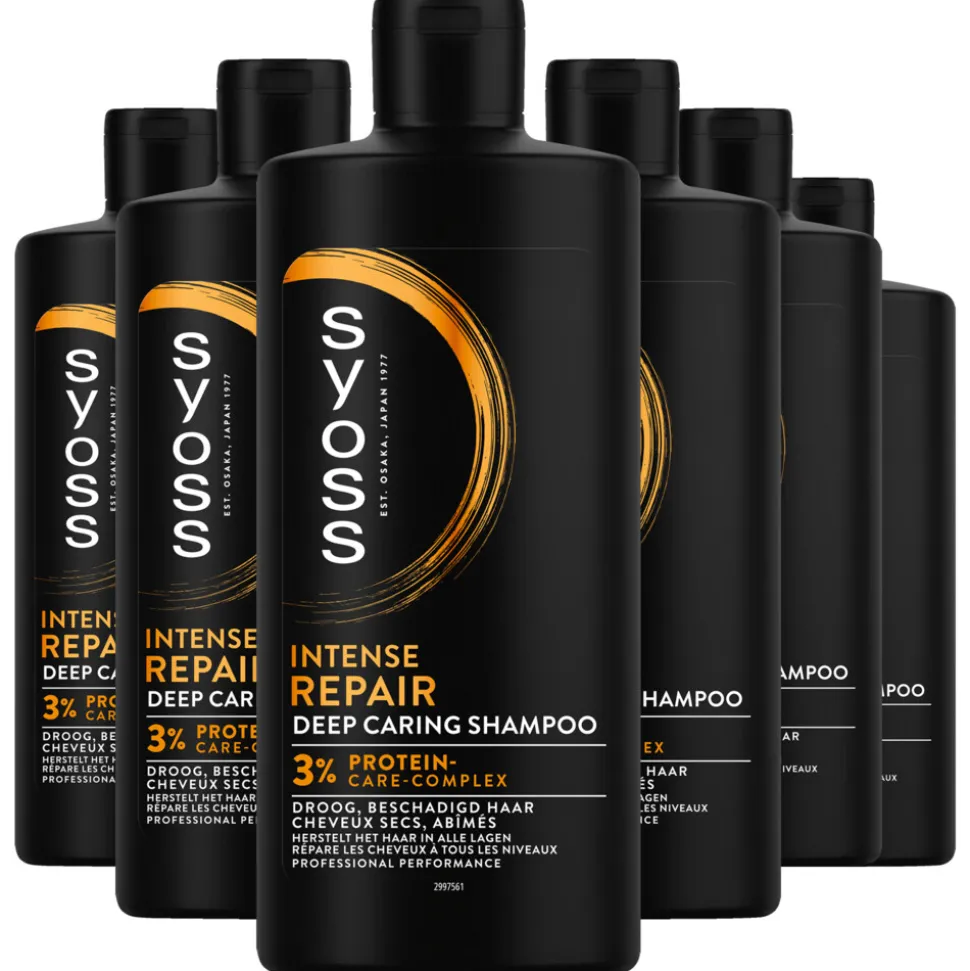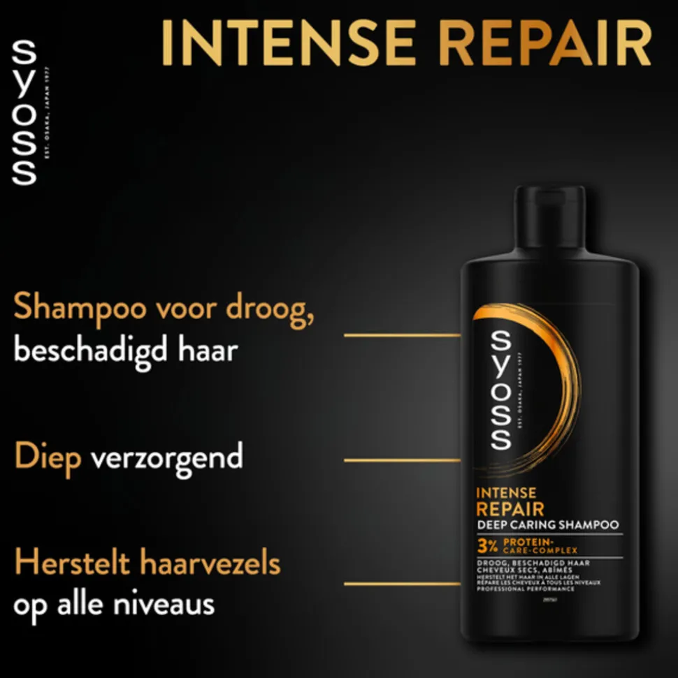 - De shampoo zorgt voor diep herstel en tot 90%* minder haarbreuk (* in combinatie met Syoss Repair Conditioner).