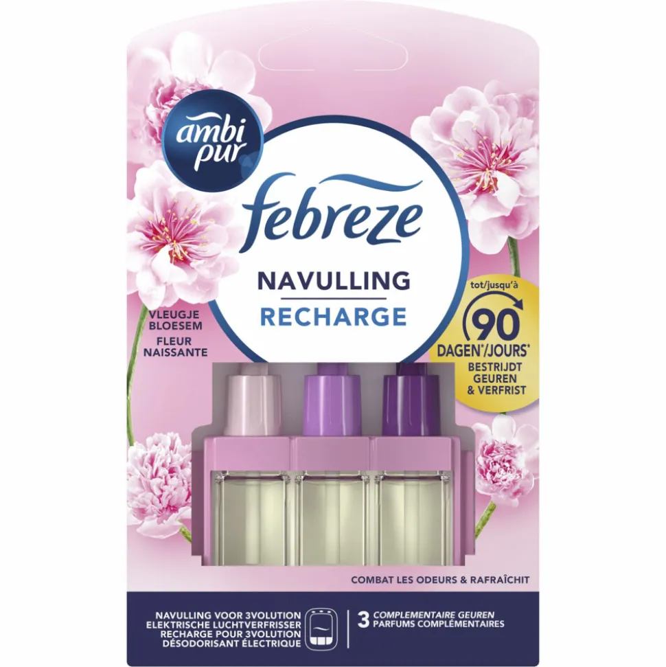 Ambi Pur 3Volution Vleugje Bloesem bestrijdt voortdurend geurtjes en wisselt tussen 3 elkaar aanvullende parfums voor een frisheid die je blijft ruiken. Gaat tot 90 dagen lang mee (indien 12 uur per dag gebruikt op de laagste stand). Laat je overspoelen door een gevoel van rust terwijl deze zuivere, zachte geur de lucht vult. Met gewone geurverspreiders wennen we snel aan geurtjes en vallen ze niet meer op. Ambi Pur 3Volution vernieuwt de frisheid door voortdurend en automatisch elke 45 minuten tussen 3 elkaar aanvullende, kwaliteitsvolle geuren af te wisselen. Gebruik de Ambi Pur 3Volution navullingen met de 3Volution elektrische verdeler om je huis te vullen met een frisheid en geur die je dag na dag, week na week blijft ruiken. Met 3Volution kun je ook de parfumsterkte aanpassen, zodat je de sfeer kunt creëren die je wilt, wanneer je dat wilt.
