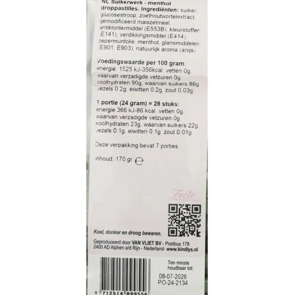 pepermuntolie, menthol, kleurstof (E141), glansmiddelen (E903, E901), natuurlijk aroma (anijs).