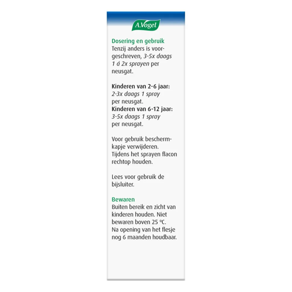 | Dosering | 1 a 2 verstuivingen per neusgat, afhankelijk leeftijd |