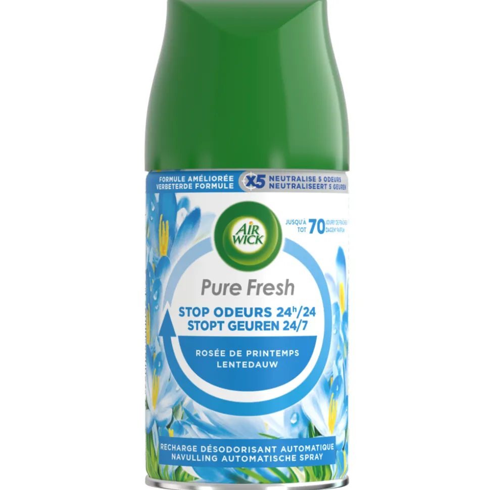 De Air Wick Pure Fresh Lentedauw Freshmatic navulling neutraliseert slechte geuren en verspreidt een parfum dat al je zintuigen prikkelt. Het parfum werkt tot 70 dagen.