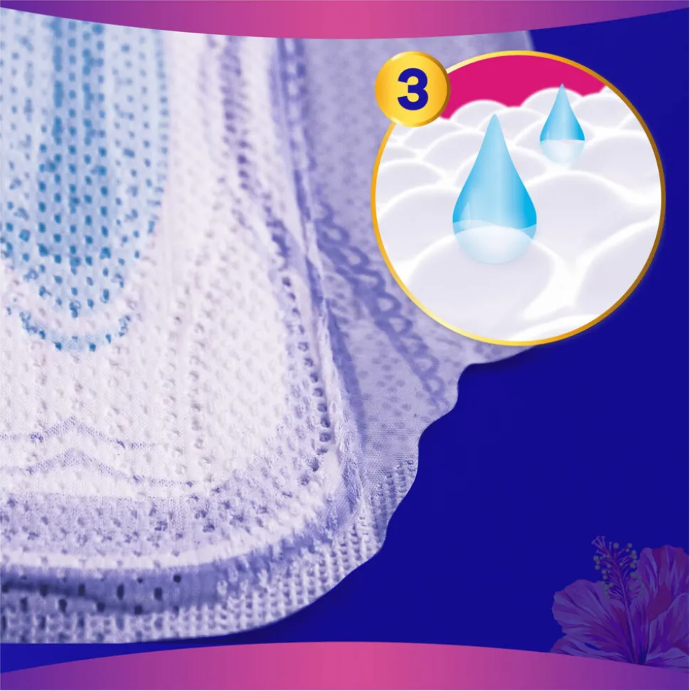 - Maandverband met ComfortLock vleugels, ontworpen voor een betere pasvorm dat past in elk soort ondergoed (vs. vorig product)
