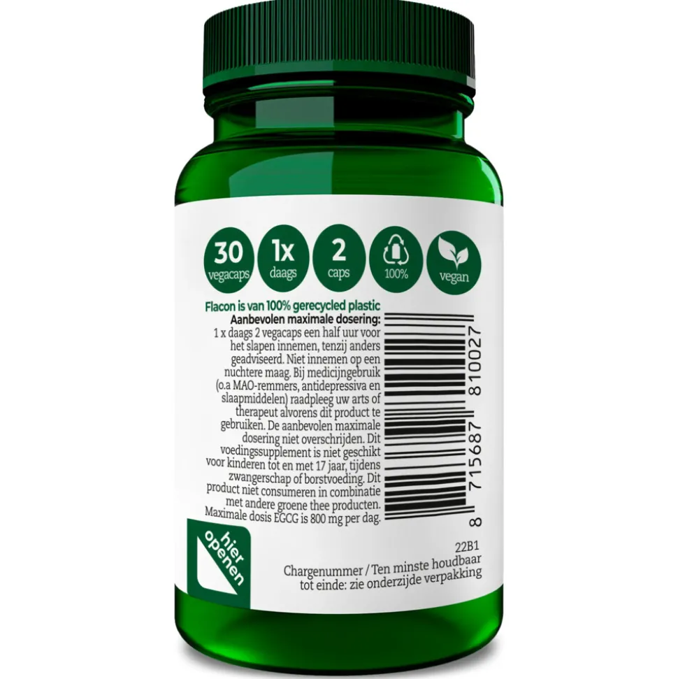 Vitamine B3 (nicotinamide)20 mgVitamine B6 (pyridoxaal-5-fosfaat)10 mgL-theanine (uit groene thee (Camellia sinensis)-extract)