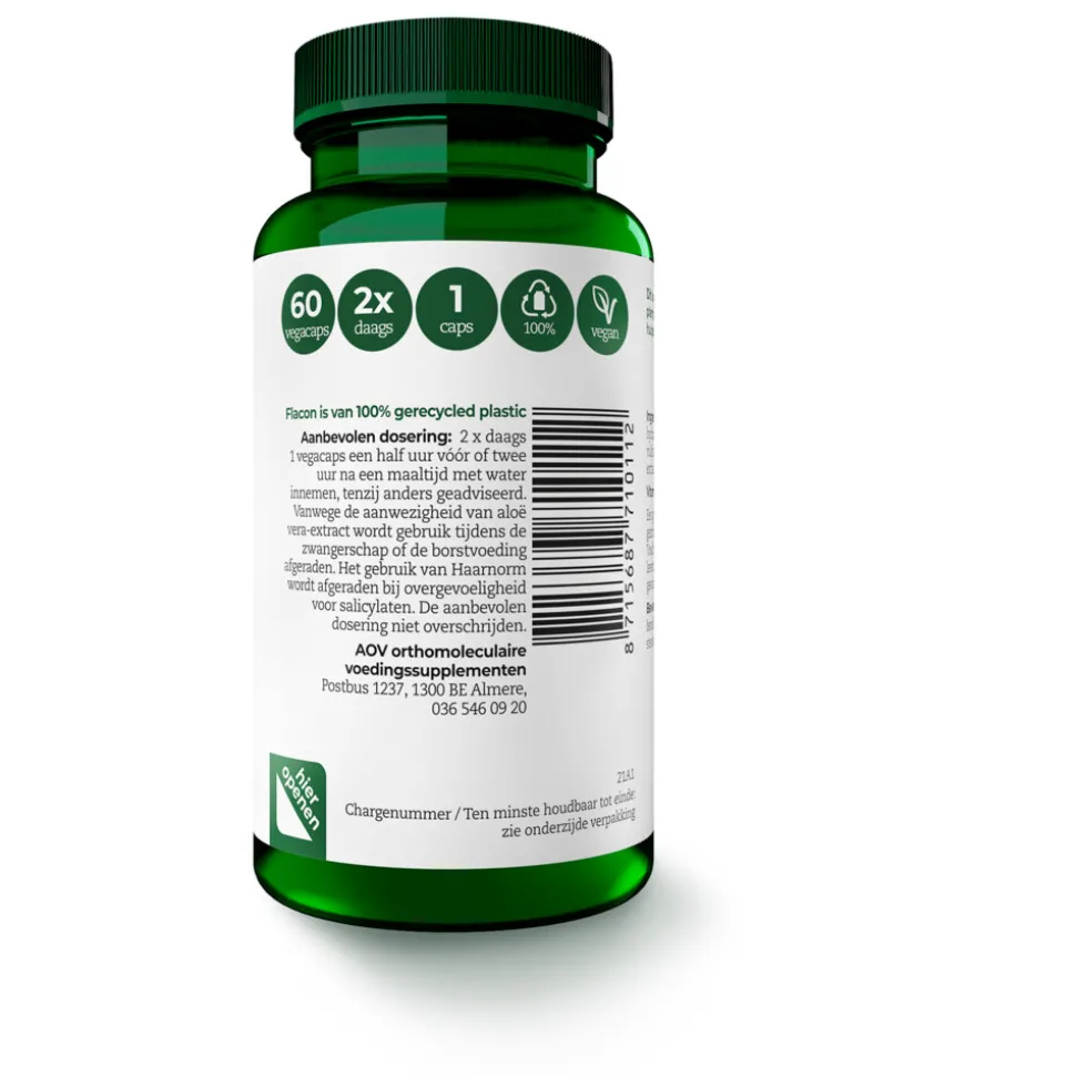 Samenstelling per dagdosering van 2 vegacaps. Pantotheenzuur (vitamine B5 als calcium pantothenaat) 169 mg (=2822 % ADH) Vitamine B12 (cyano cobalamine) 800 mcg (= 32000 % ADH) Foliumzuur (pteroyl monoglutaminezuur) 500 mcg (= 250 % ADH) Biotine 300 mcg (= 600 %ADH) PABA 50 mg Inositol 100 mg Jodium (uit kelp) 50 mcg (= 33 % ADH N-acetyl cysteïne 700 mg Aloë vera (Aloe barbadensis)-extract (200:1) 50 mg Mineralen zijn vermeld met hun elementaire hoeveelheden. %ADH = Het percentage van de Aanbevolen Dagelijkse Hoeveelheid Ingrediënten: N-acetyl cysteïne, vitamines (vitamine B5, vitamine B12, foliumzuur, vitamine C (ascorbyl palmitaat)), HPMC (vegacaps), inositol, kelp-extract, PABA, aloë vera-extract, natuurlijke cellulose. Allergeneninformatie: Vrij van allergenen en hulpstoffen. Is geschikt voor vegetariërs. Vanwege bestanddelen afkomstig van dierlijke producten is dit product niet geschikt voor veganisten Dosering en gebruik: 2 x daags 1 vegacaps een half uur vóór of twee uur na een maaltijd met water innemen, tenzij anders geadviseerd. Maximale dagdosering niet overschrijden.
