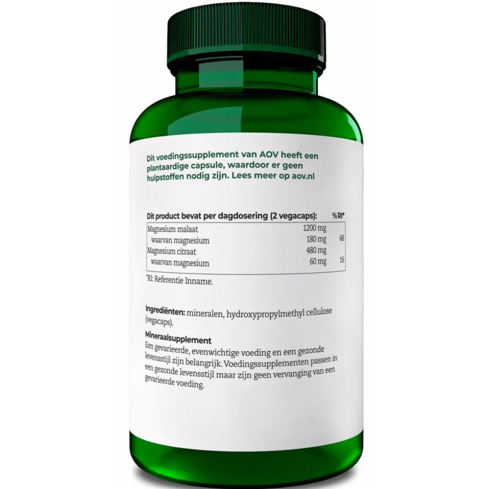 AOV Magnesium Malaat & Citraat 518 bieden jou dagelijks 120 mg goed opneembare, organisch gebonden magnesium. Dit essentiële mineraal ondersteunt sterke botten, helpt je spieren normaal te functioneren en speelt een rol bij de overdracht van zenuwprikkels. Daarnaast draagt magnesium bij aan extra energie bij vermoeidheid of moeheid. Deze formule is vrij van synthetische toevoegingen en geschikt voor vegetariërs en veganisten. Je kiest hiermee voor een zuiver en effectief supplement dat past bij een bewuste levensstijl.