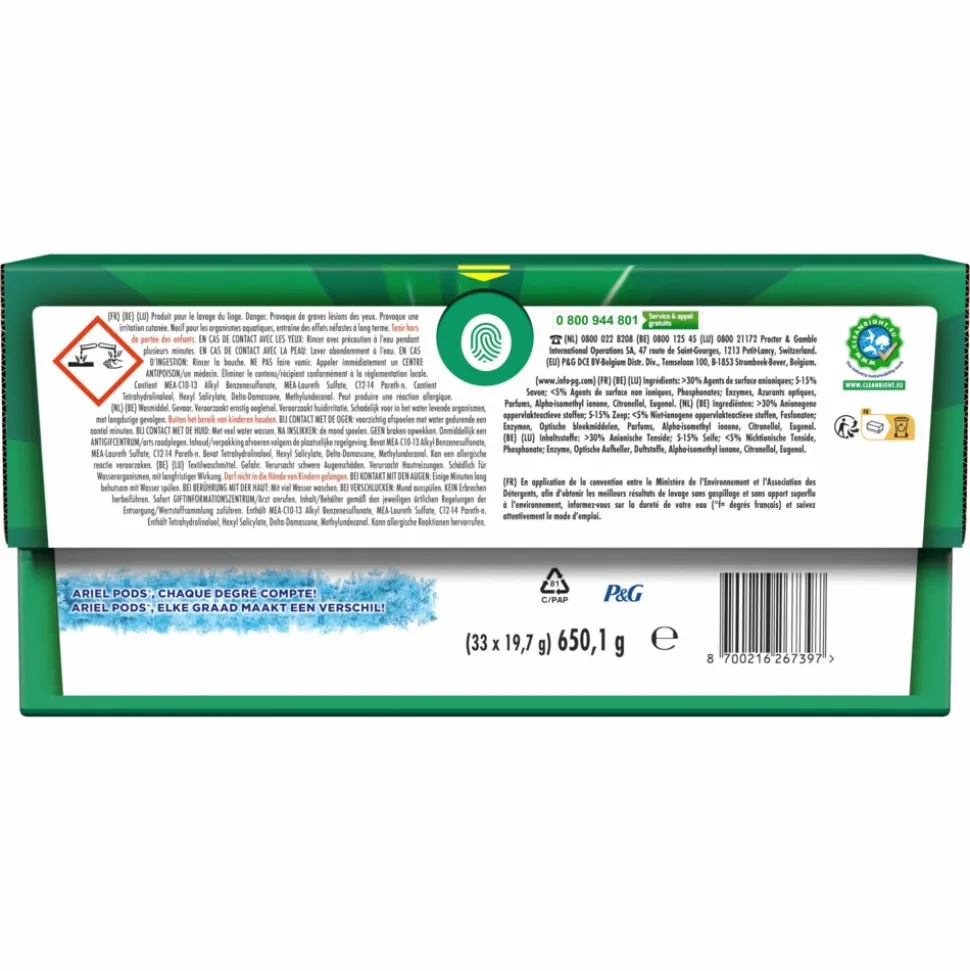 - Onberispelijk, bij koude en korte programma’s: Ariel 3in1 PODS bieden onberispelijke resultaten bij koude en korte programma’s