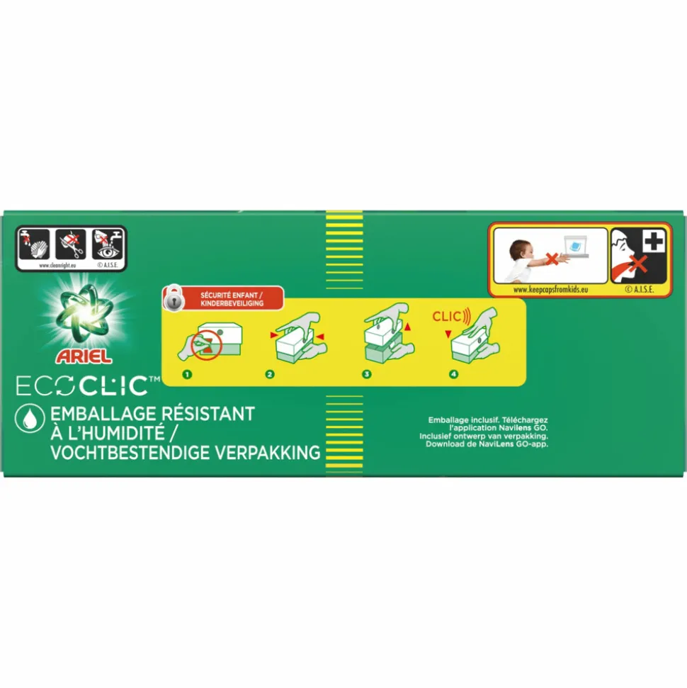 - ECOCLIC kartonnen doos: Zorg voor minder plastic met Ariel 3in1 PODS wasmiddelcapsules, verpakt in een recyclebare kartonnen doos die gemaakt is met 70% gerecyclede vezels en maximaal 5% plastic, ontworpen om je PODS te bewaren
