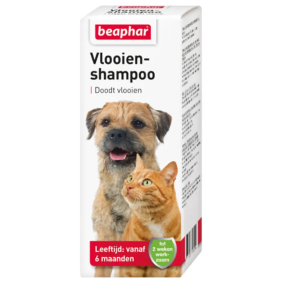 De vlooienshampoo van Beaphar is geschikt voor de bestrijding van vlooien bij honden en katten. Beaphar Vlooienshampoo is een vlooienmiddel dat werkt op twee manieren: 1. Knock-Down werking: Tijdens het wassen van de dieren komen de vlooien op het dier in aanraking met permethrine. De vlooien worden hierdoor gedood. 2. Residue-werking: na het wassen werkt de achter gebleven permethrine nog 1 à 2 weken door.