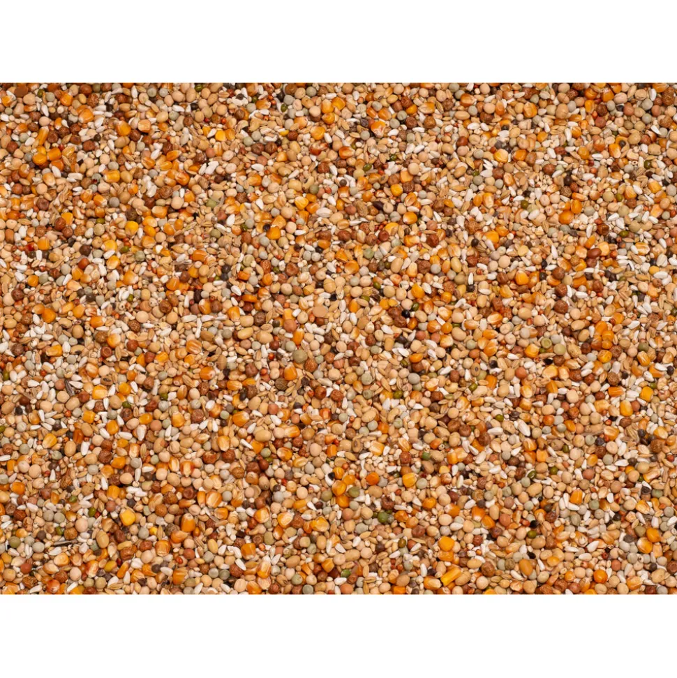 Kleine cribbs maïs – dari – witte tarwe – cardy – maple peas – kleine groene erwten – kleine gele erwten – popcorn maïs – extra rode sorgho – paddy rijst – getoaste sojabonen – gerst – vitsen/wikken – dunpeas – Katjang Idjoe – duivenrijst – boekweit.