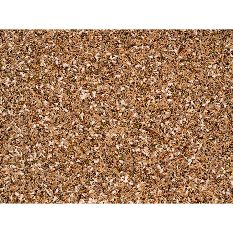 Kanariezaad – hennep – gepelde haver – koolzaad – duivenrijst – rode millet – cardy – extra witte dari – katjang idjoe – witte perilla – raapzaad – zilvervliesrijst – sesamzaad.