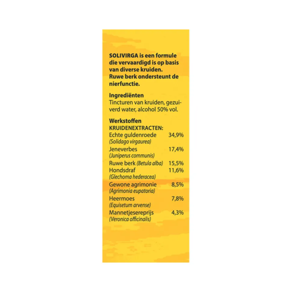 Bloem Solivirga nr. 209 is een kruidenpreparaat met verschillende kruiden en plantaardige bestanddelen. Ruwe berk ondersteunt de nierfunctie*