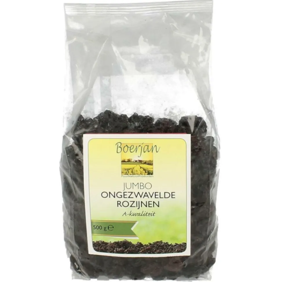 Boerjan Rozijn Jumbo Blauw Ongezwaveld biedt je de pure smaak van gedroogde sultana rozijnen zonder kunstmatige toevoegingen. Deze ongezwavelde rozijnen zijn ideaal voor het verrijken van diverse gerechten zoals pannenkoeken, brood, koek en cake. Ze zijn rijk aan smaak en geven een natuurlijke zoetheid aan je baksel. Perfect voor wie houdt van gezonde en smakelijke toevoegingen in de keuken.
