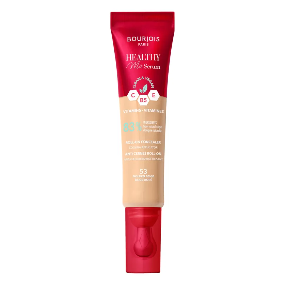 De Bourjois Healthy Mix Serum Concealer in de kleur Golden Beige 53 is de perfecte concealer voor een stralende en egale huid. De lichte formule is verrijkt met vitamines en fruitextracten, waardoor de huid wordt verzorgd terwijl onzuiverheden en donkere kringen worden gecamoufleerd. De concealer heeft een serumtextuur die gemakkelijk blendt en een natuurlijke finish achterlaat.