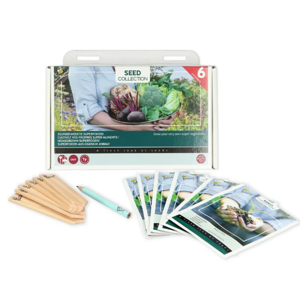 Zelfgekweekte superfoods! Kweek je eigen super groenten! Een collectie van 6 soorten super gezonde groenten die je lichaam écht voeden. Deze selectie van groenten bevatten een buitengewone hoeveelheid voedingsstoffen en antioxidanten zoals: bètacaroteen, vitamine C en E, waardoor ze een positief effect op jouw gezondheid hebben. Zo worden bijvoorbeeld je smoothies niet alleen voedzamer, maar door zelfgekweekte groenten nog eens extra lekker. Deze selectie superfoods is eenvoudig en met plezier te zaaien.