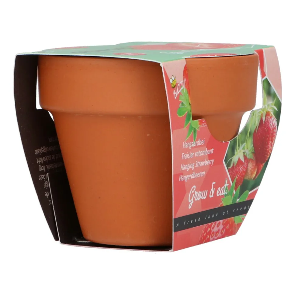 Dit Aardbei groeicadeautje is het ideale cadeautje om te geven en is geschikt voor de tuin, het balkon of je terras. Het Aardbei groeicadeautje bestaat uit een terracotta bloempotje van 5 cm hoog, inclusief een zakje zaad en potgrondtabletje.