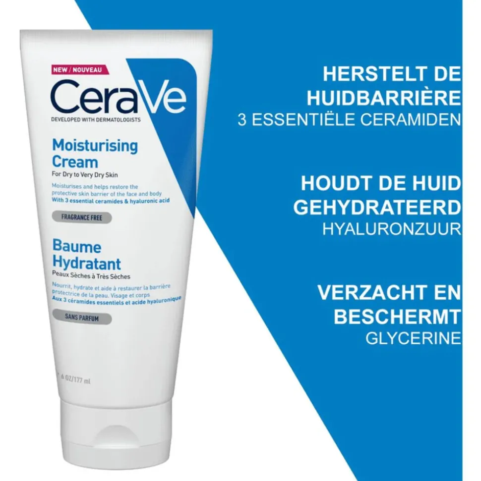 Ontwikkeld met behulp van dermatologen, ideaal voor droge tot zeer droge huid en voor het gezicht en lichaam, bevat deze rijke, niet-vette en parfumvrije crème de gepatenteerde MVE technologie. Deze technologie zorgt voor continue afgifte van een concentratie van hyaluronzuur en de drie ceramiden gedurende de dag. Deze verzorging is geschikt voor de gevoelige huid, dankzij de parfumvrije formule rijk aan ceramiden, die de huid in staat stelt om een hoog niveau aan hydratatie te behouden en de huid zachter en comfortabler maakt.
